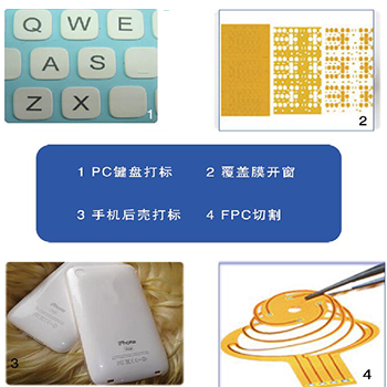 主要用于各種玻璃、液晶屏、紡織品、薄片陶瓷、半導(dǎo)體硅片、IC晶粒、藍(lán)寶石、聚合物薄膜、噴油層、電鍍層、FPC等材料的打標(biāo)、表面處理和切割。